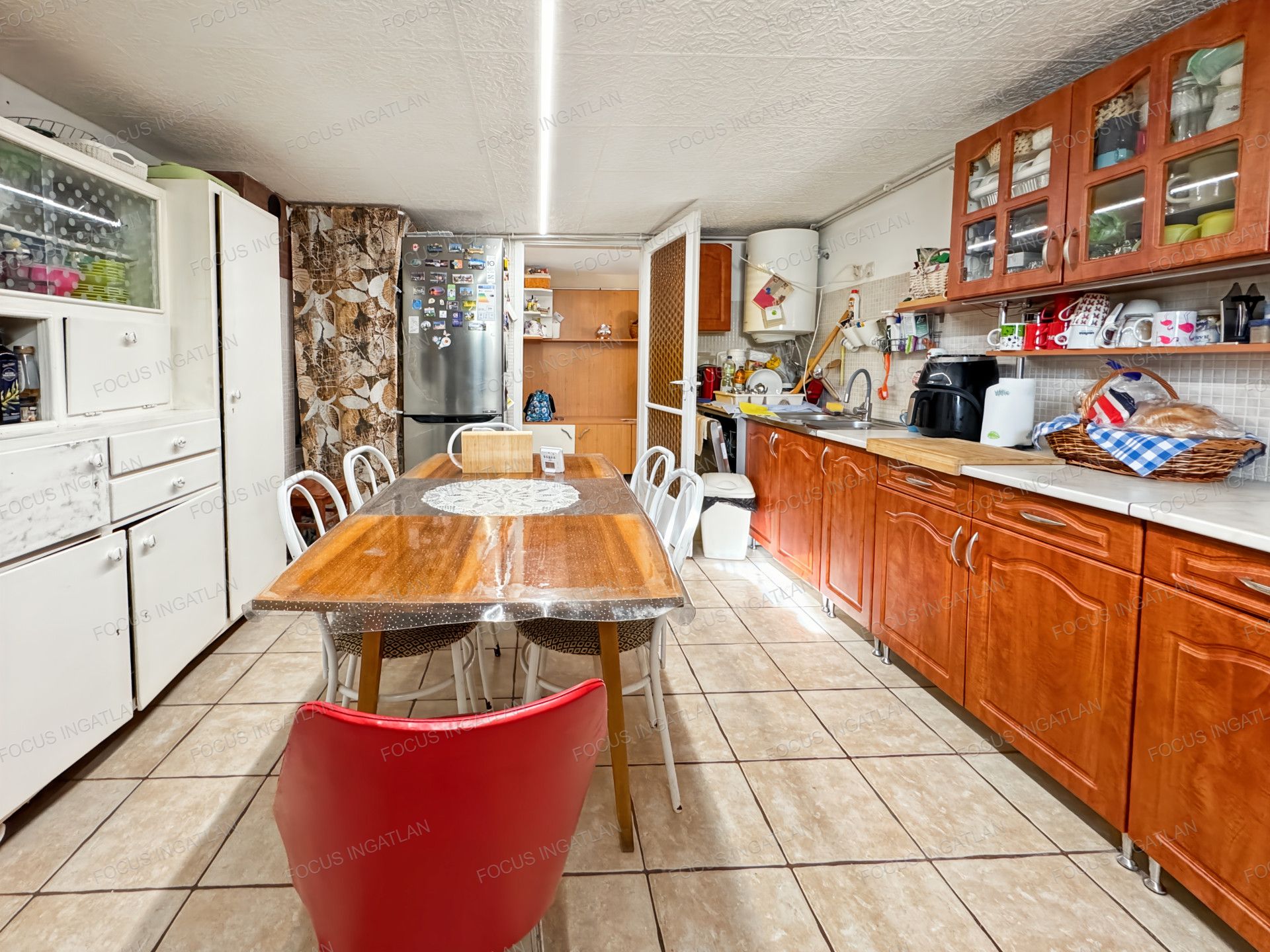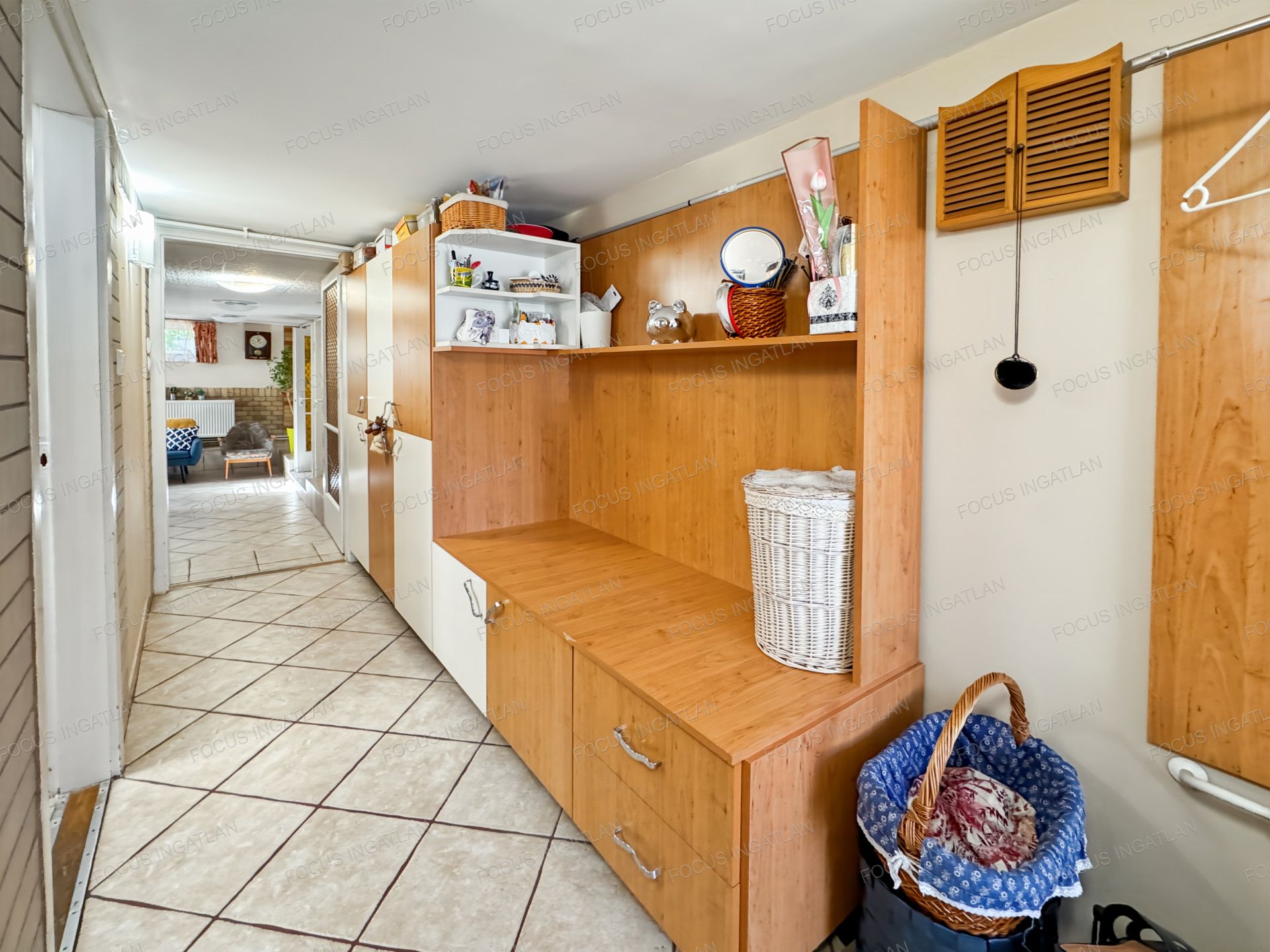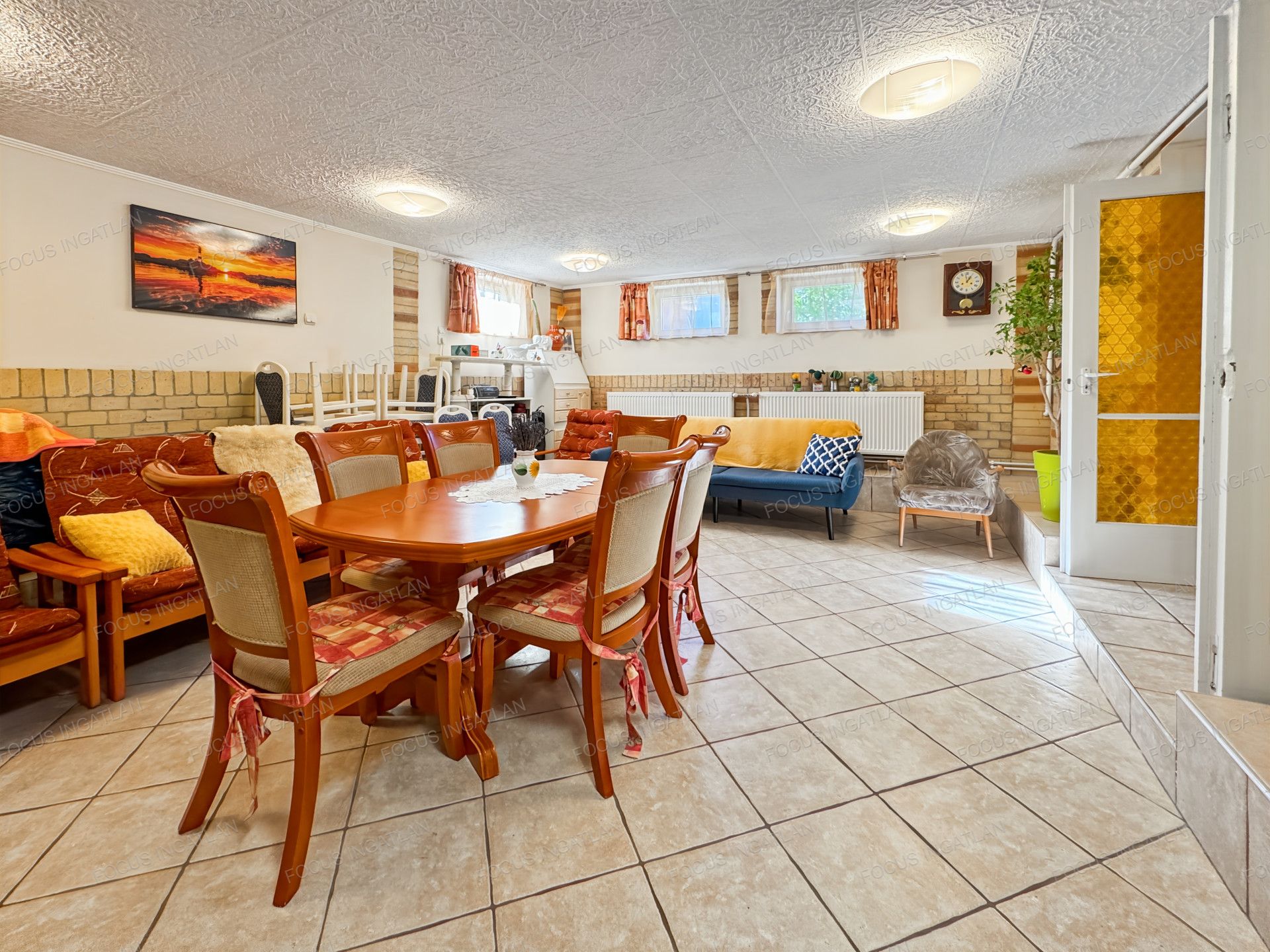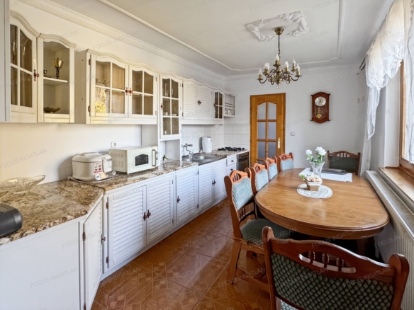 Az ingatlan földszintjén a konyha még kialakításra vár, de minden szükséges kiállás és csatlakozás rendelkezésre áll, így az új vevő a saját ízlése szerint rendezheti be a helyiséget.