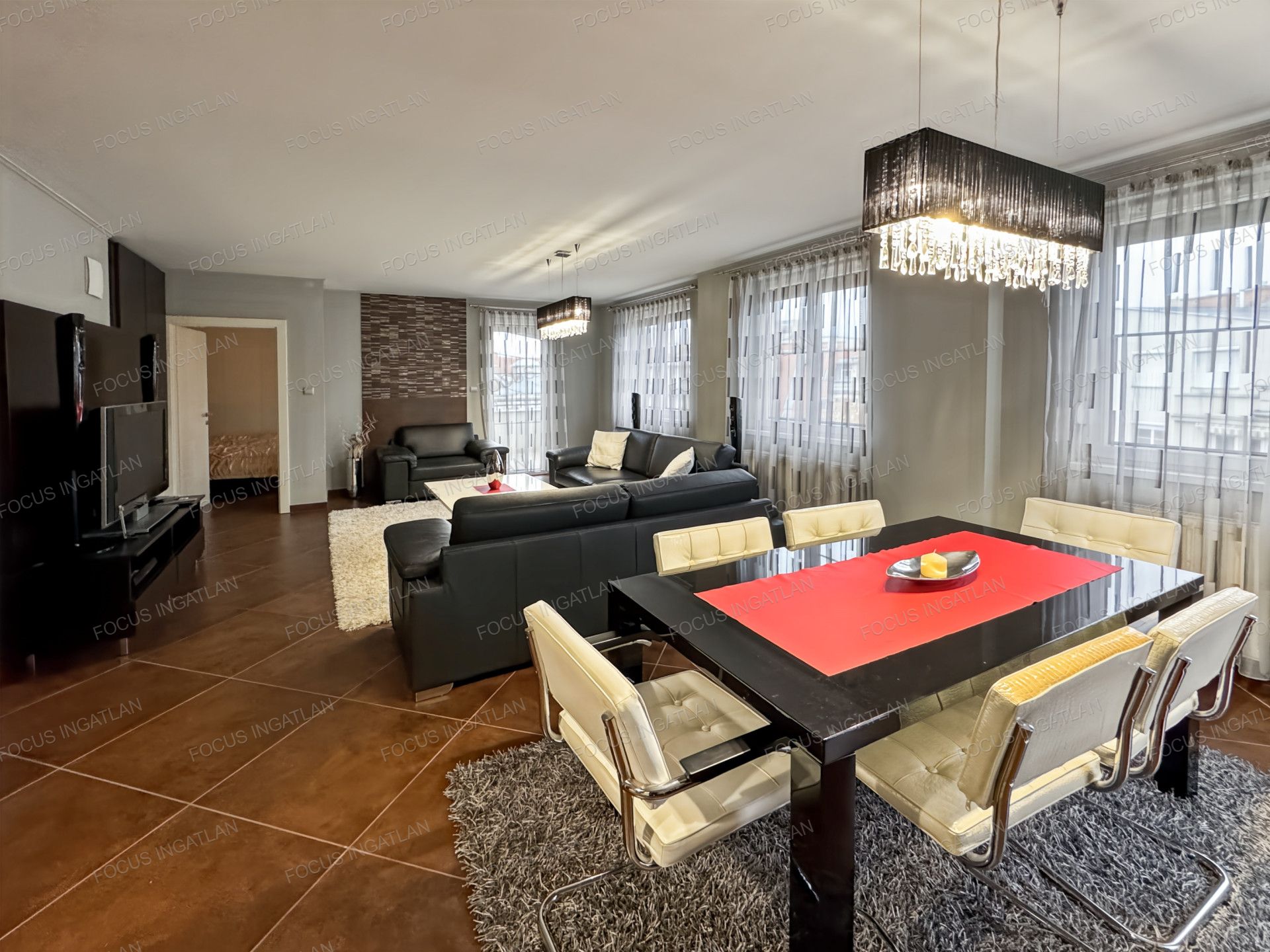 Kiadó Kecskemét Belvárosában, a rendőrség közelében, szigetelt liftes tégla társasház IV. emeletén, 78 nm-es, nappali + 2 szobás igényes lakás dupla terasszal, teljesen bútorozva!