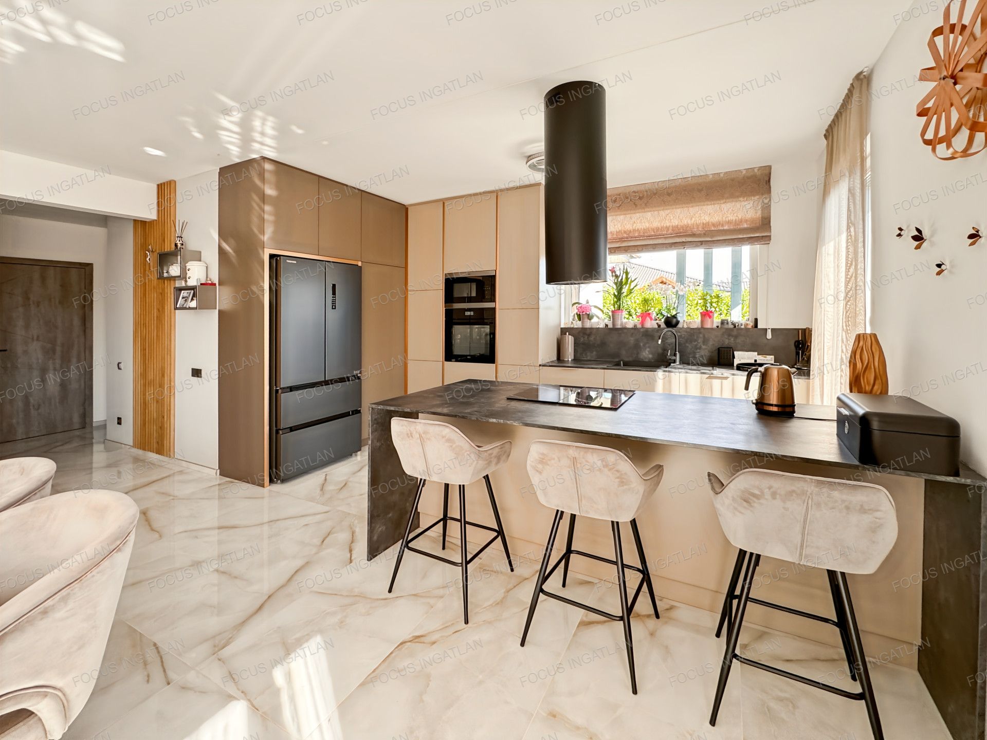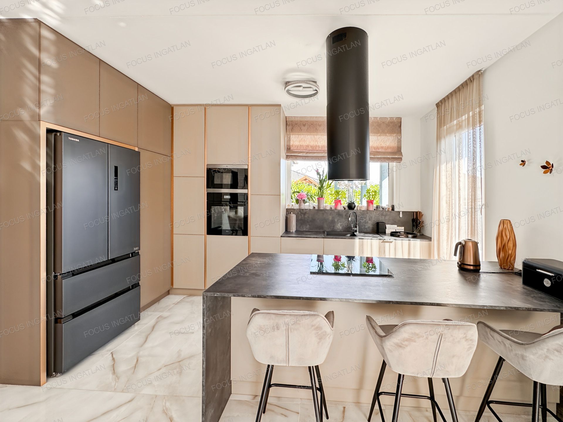 – Teljesen felszerelt: Az ingatlan a vételárban szereplő teljes bútorzattal együtt eladó, beleértve a prémium konyhabútort is.